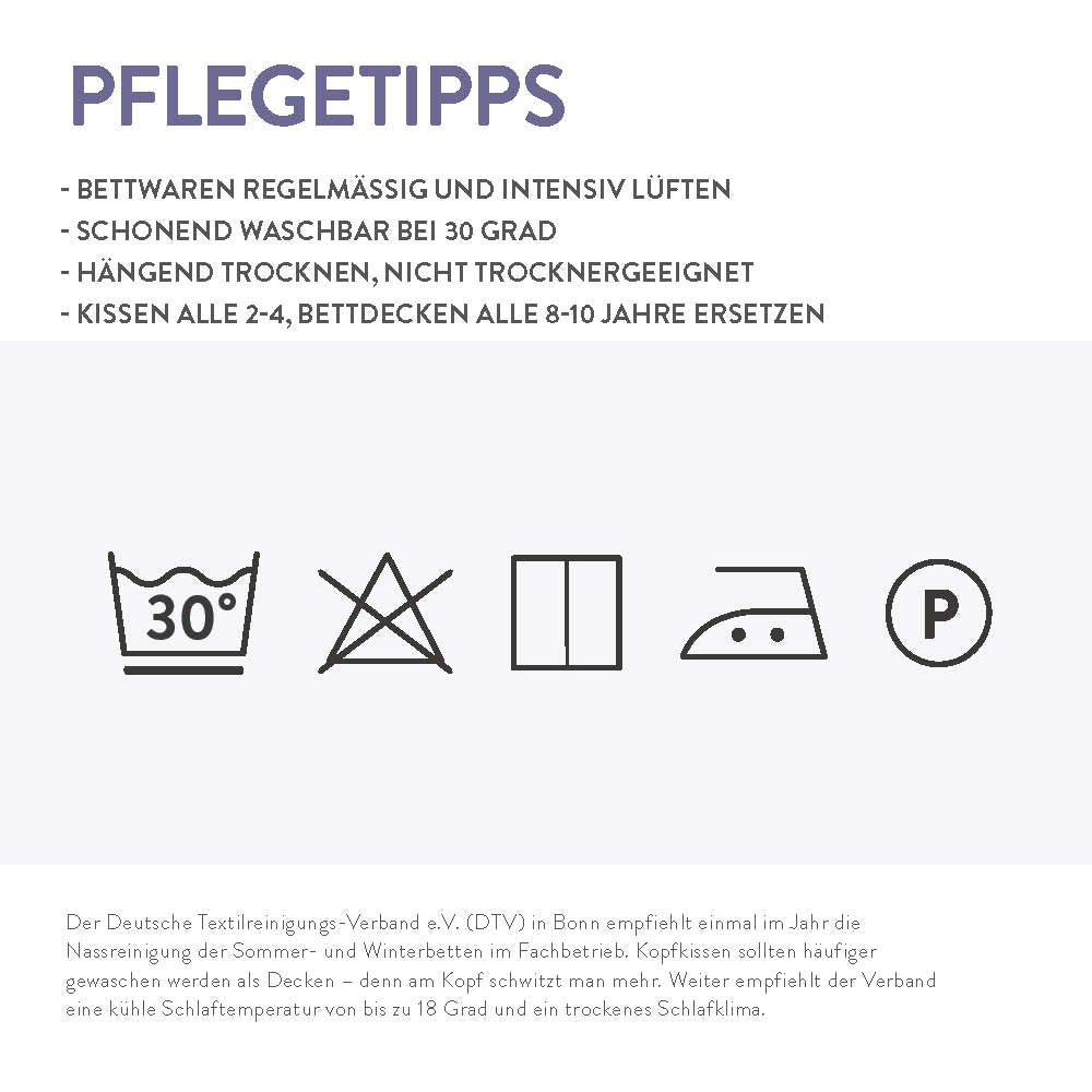- Kissen: 70 % Federn und 30 % Daunen in hochwertigem Mako-Inlett