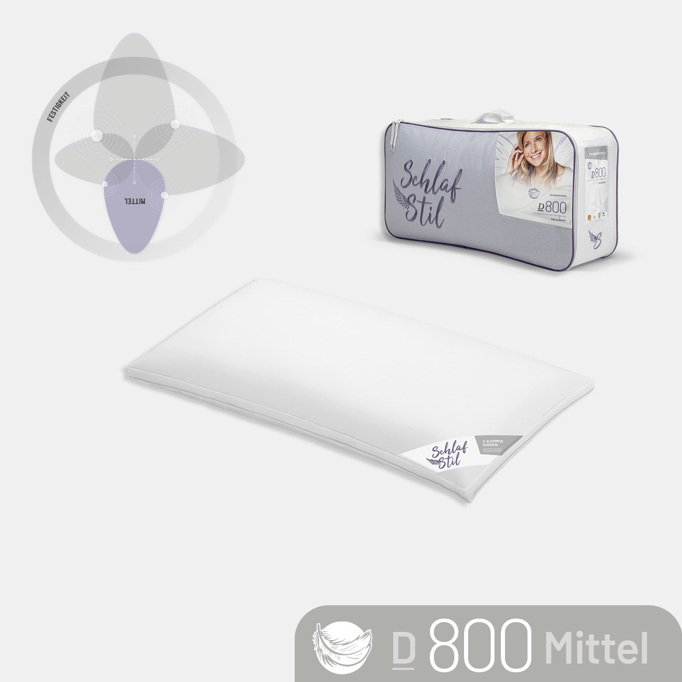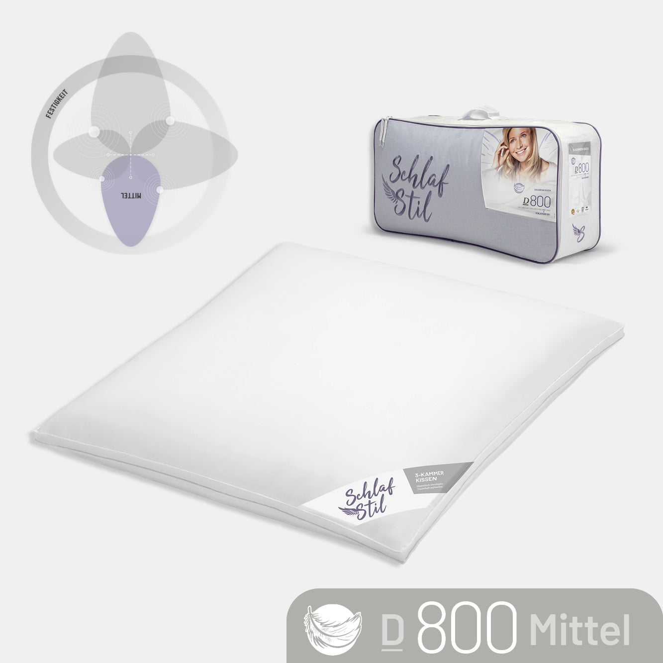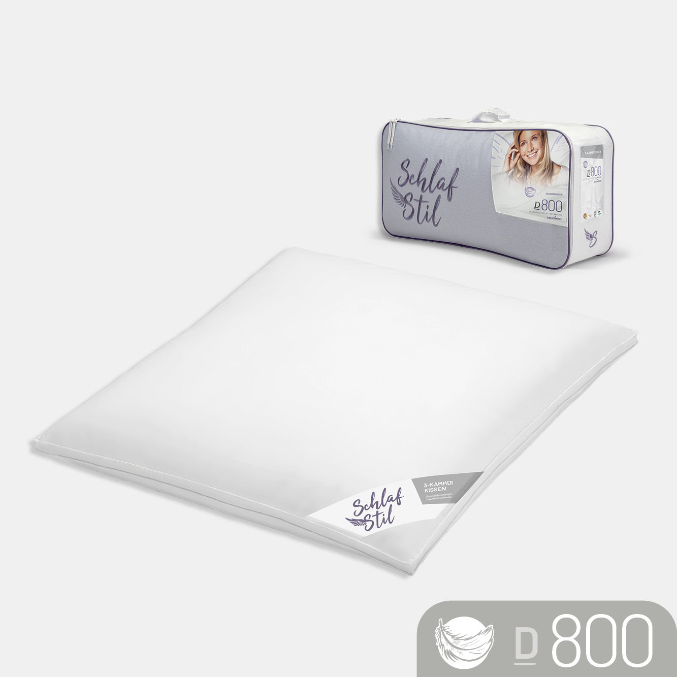 3-Kammer Gänsedaunenkissen D800, 100 % Gänsedaunen (Außen)