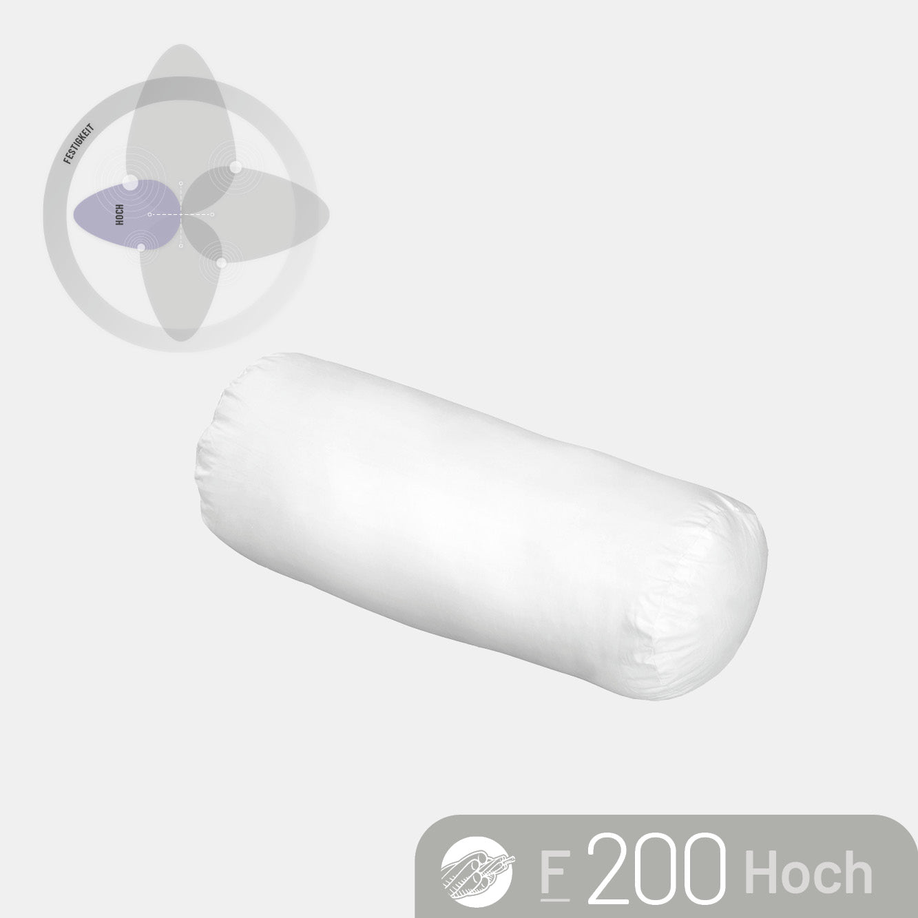 - F200: weißer, hochbauschiger Faserflaum aus 100 % Polyester; Bezugstoff aus 100 % feinem Baumwollgewebe